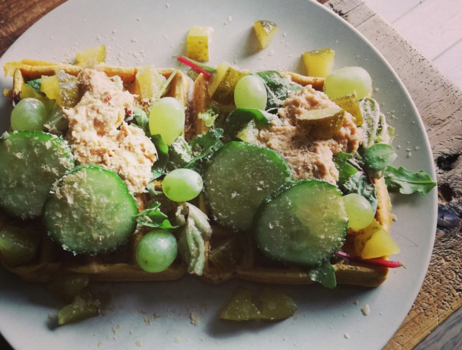 Hartig ontbijtrecept: Wafels gemaakt van kikkererwtenmeel met kruiden