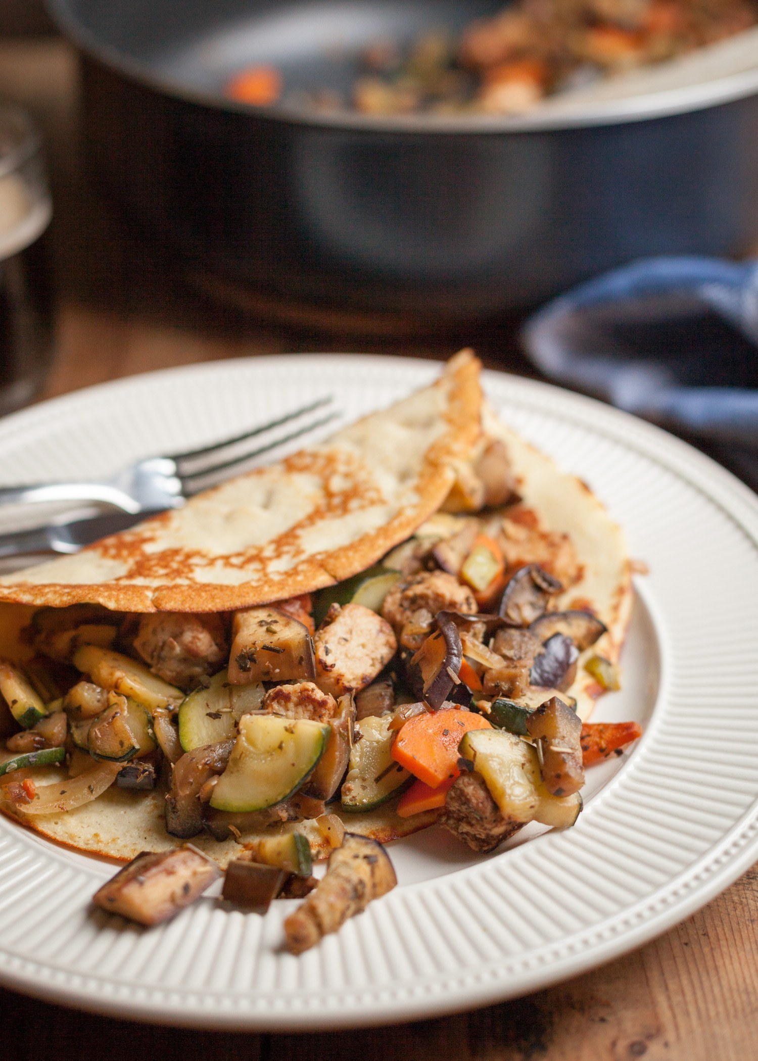 Deze hartige pannenkoek vulden we met Quorn en gewokte groenten. Doordat we gebruik maakten van kokosmeel, is deze ook nog eens glutenvrij. De kokos geeft de pannenkoek bovendien een licht zoet smaakje dat perfect combineert met de gewokte groenten. Probeer maar eens :-D.