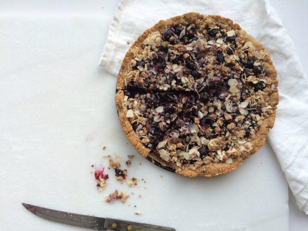 Omdat ik gek ben op ontbijten probeer ik vaak nieuwe dingen uit. Iets nieuws uit proberen kan wel eens mis gaan (ja, dat gebeurd hier ook wel eens), maar als het lukt dan heb je er een nieuws feestelijk ontbijtje bij, zoals dit blauwe bessen taartje met crumble!