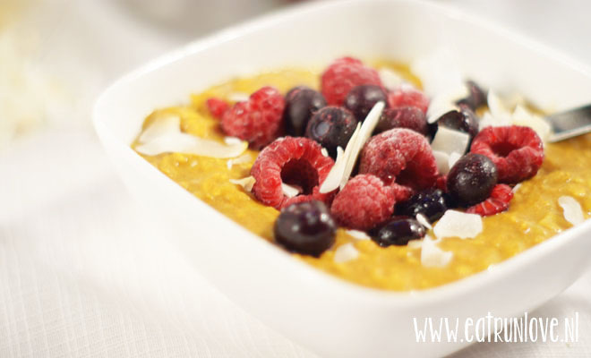 Nu het weer wat kouder wordt, heb ik automatisch ook meer zin in warme ontbijtjes. Waar ik de havermout echt maanden links heb laten liggen, wil ik nu weer vaker havermout gaan eten op intensieve dagen. Zo maakte ik afgelopen week een warm havermoutpapje met kurkuma en kaneel. Kurkuma is een zeer krachtig kruid dat curcumine bevat; dit is ontstekingremmend, anti-bacterieel en zit vol anti-oxidanten. Perfect voor deze dagen dat je eventueel wat minder weerstand hebt. De smaak is licht pittig, maar helemaal niet overheersend.
