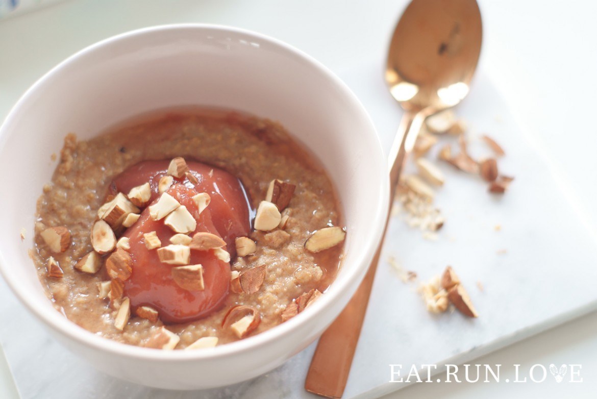 Soms heb je gewoon zin in een niet al te ingewikkeld ontbijtje. Geen poespas, niet te veel calorieën, maar wel smaakvol. Deze havermout met stoofperen is daar een goed voorbeeld van met slechts een paar ingrediënten en iets meer dan 300 calorieën. Je denkt misschien, oh havermout dat duurt lang om klaar te maken, maar dat kan binnen vijf minuten op tafel staan. Ik meng de havermout altijd met kaneel en melk, zet het op het vuur en laat het zachtjes pruttelen tot het indikt. Zo’n vijf minuten. Ondertussen hak ik de nootjes en snijd ik de peertjes en dan schep ik dit bovenop. Omdat het dan nog best heet is, maak ik mezelf ondertussen op zodat als ik klaar ben daarmee ik direct kan aanvallen.