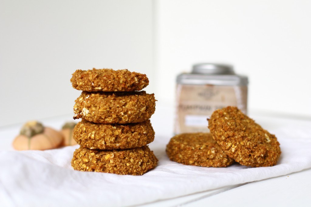 Doordat ze vrij zijn van geraffineerde suiker zijn ze niet knapperig maar chewy. De koekjes zijn natuurlijk ook heerlijk als tussendoortje maar ik vind het meer een ontbijt koekje ofzo, ik denk door de structuur en de havermout. Oh, en de pumpkin spice die ik gebruik is een mengeling van kruiden als kaneel, nootmuskaat, koriander, piment, kruidnagel, gember, steranijs en laurier. Lekker in koekjes en cakes? Heel erg! Deze kruiden zelf bij elkaar sprokkelen? Kan, maar het is echt de moeite waard om een potje op de kop te tikken want je zult het als foodie nodig hebben deze herfst. In deze tijd van het jaar is dit kruid bij veel supermarkten verkrijgbaar als special maar online kun je natuurlijk ook altijd terecht. Mijn lieve blogger vriendin Kim verkoopt lekkere kruiden (in leuke potjes) via haar webshop. Ook súper leuk om cadeau te geven trouwens.