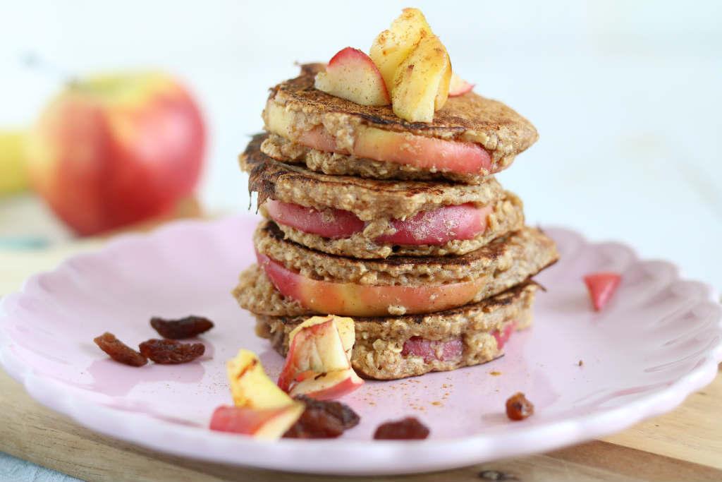 Oh, ik sta echt te popelen om dit recept met jullie te delen. Mijn buikje zit nog vol van de havermout pannenkoeken met appel. De smaak is helemaal te gek! Kennen jullie de bananenpannenkoeken nog? Waarschijnlijk wel, want dit pannenkoeken recept staat al jaren in mijn top 10. Dit ontbijtrecept is hier een variatie op.