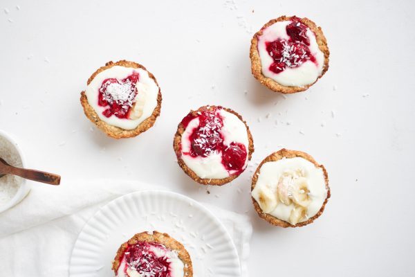 . Dat omschrijft precies deze havermouttaartjes met yoghurt en fruit. Een perfect ontbijtje voor het weekend of en vrije ochtend.