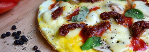 Een pizza als ontbijt? Why not! Om het toch een beetje gezond te houden - we willen ten slotte wel allemaal dansend 100 jaar oud worden - maak je de bodem van deze pizza van ei. Een omelet dus, maar dan belegd als pizza. Oh, wat een creativiteit zo op de vroege ochtend!