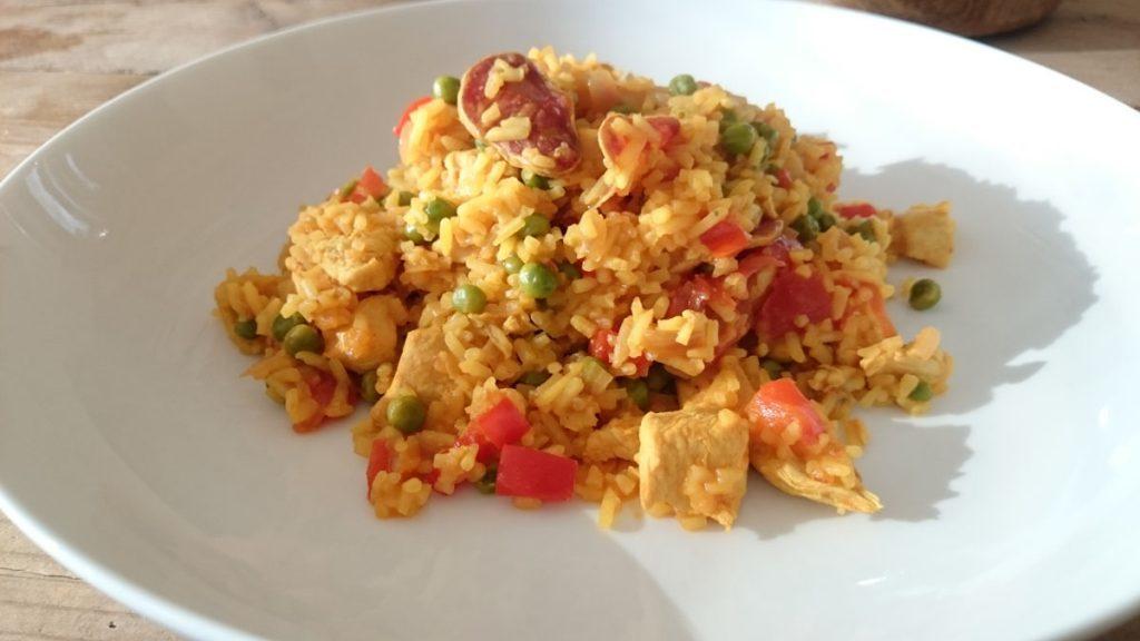 Toen ik hoorde dat we ook nog eens paella gingen eten ipv pannenkoeken, was het eerste was ik dacht neee geen vis toch? Ik mag dan wel als doel voor dit jaar hebben om meer vis te eten, maar toch liever niet te veel hoor! Vanuit de keuken begon het heerlijk te ruiken en, gelukje voor mij, het gerecht was paella zonder vis.