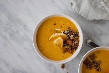 Pompoen is heerlijk in smoothies en bowls. Vooral in combinatie met sinaasappel en kaneel. Een herfstachtige combi die de bowl een beetje zoet en romig maakt. Een voedzame smoothiebowl om je dag mee te beginnen. En nog helemaal plantaardig ook.