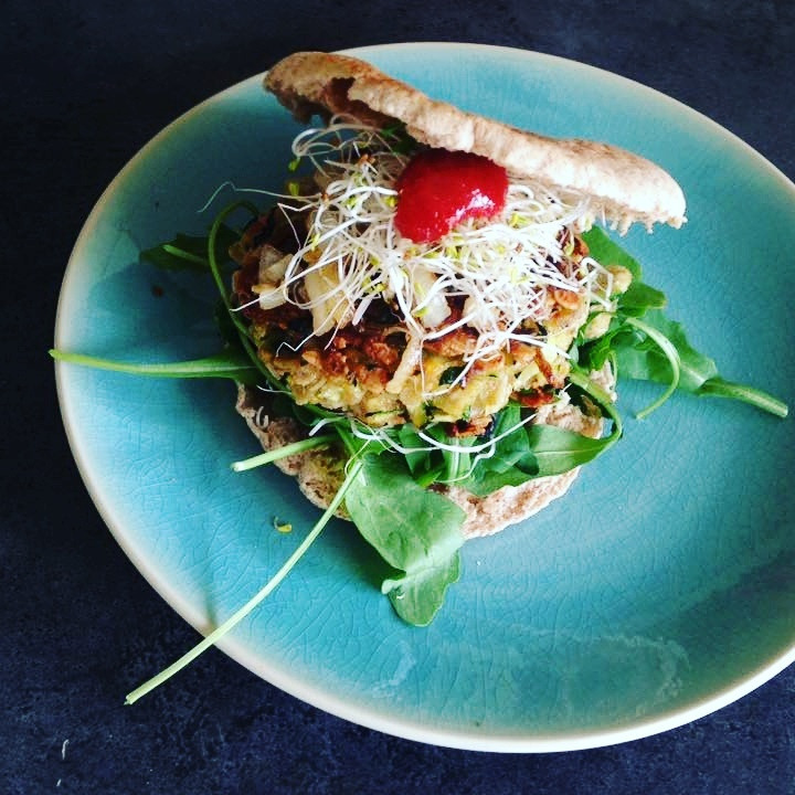 Een vegaburger hoeft echt niet saai te zijn. Deze courgetteburger is eens wat anders en super lekker. Soms wil je gewoon even een dagje geen vlees dan maak je deze heerlijke vegaburger. Maak er met wat rucolasla, augurk, wat kiemen een echt burger van! Ik vind een gewone burger van rundvlees ook erg lekker, maar ik hoef niet dagelijks vlees of vis te eten. Ook vind ik het leuk om wat te experimenteren en kijken wat het gaat worden.
