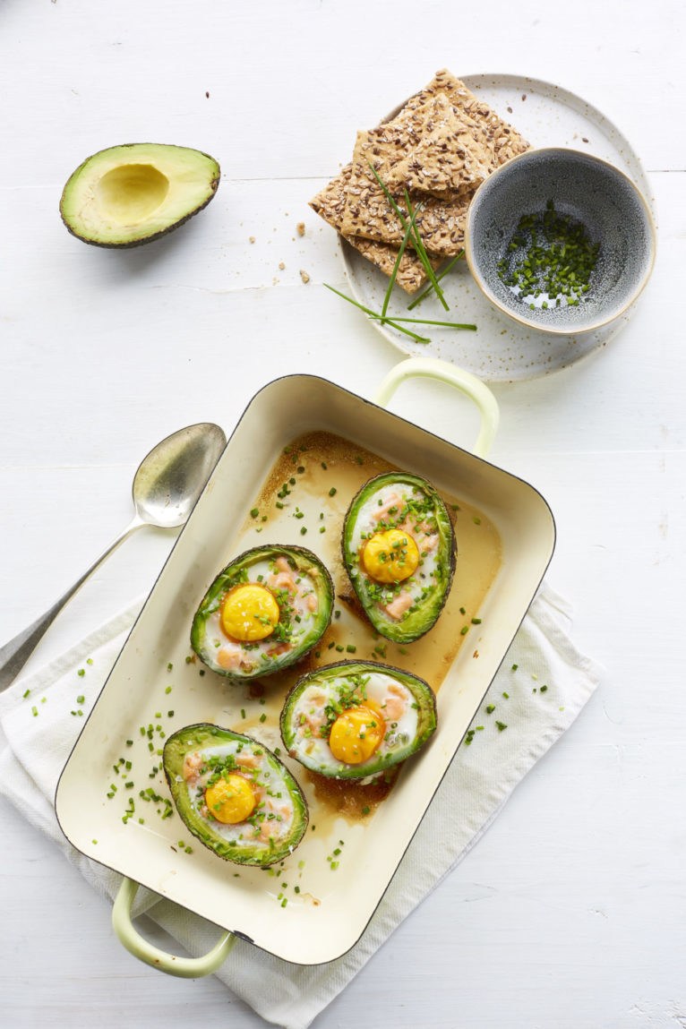 Avocado met gerookte zalmsnippers en ei: Een super makkelijk en heel gezond gerecht, dat er ook nog eens heel leuk uitziet. Dit is geschikt voor een zondagontbijtje, maar ook als lunch.