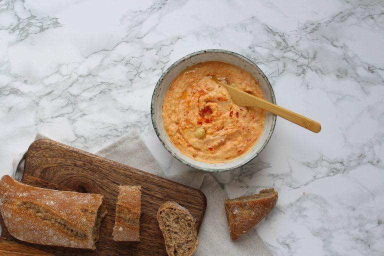 Een beetje pittige en smaakvolle hummus! Je hebt een bakje hummus met Harissa zo gemaakt. Gooi alles voor een standaard hummus recept door de keukenmachine, een lepel Harissa er door en klaar is je heerlijke spread! En deze is nog gezond en vegan ook.