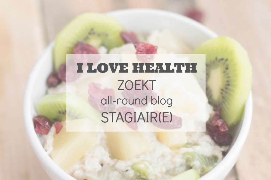 I Love Health gaat als een trein en ik heb veel leuke plannen. Dus ik kan heel goed de hulp van een topper gebruiken! Het betreft een stage vanaf circa 1 juni, in elk geval gedurende de zomer, t/m augustus. In overleg is langer ook mogelijk. Omdat de stage in de zomerperiode is, ben ik niet perse naar iemand op zoek die vanuit haar opleiding stage mag lopen. Het mag ook een zelf geïnitieerde stage of een werkervaring stage zijn. Ik beloof je een hele leuke stageplek waarbij je veel leert, leuke dingen gaat doen en veel nuttige werkervaring op zult doen! Minimaal 2 dagen per week, maximaal 4 dagen per week. Alles in overleg, Ik ben flexibel 🙂