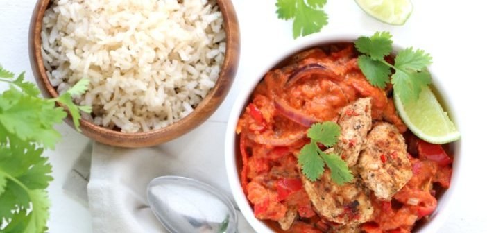 Afgelopen week was een hele saaie eetweek. Ik had door alle drukte van de dagen ervoor heel weinig inspiratie. En het weer werkte ook niet helemaal meeā¦. Die regen overviel me een beetje, ik had nog wel een mooie nazomer willen hebben. Dwalend door de supermarkt, zonder enig idee waar ik moest beginnen voor de avondmaaltijd, kwam ik langs het schap met wereldgerechten. Je weet wel, die maaltijdpakketten, waar je dan zelf nog een paprika aan toe moet voegen. De Indiase kip tikka masala trok mijn aandacht en ik besloot dat die avond te eten. Maar dan wel zelfgemaakt natuurlijk!