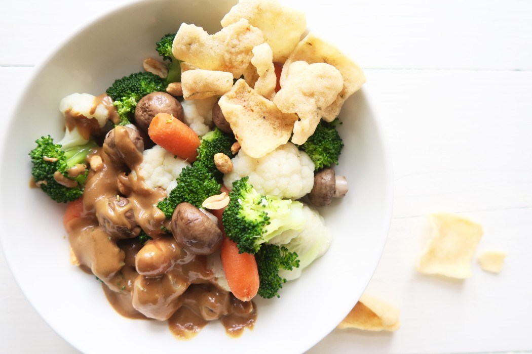 Nu is een bord doorgekookte groenten wat saai als avondeten en is trouwens ook hartstikke zonde omdat je alle smaak er uitkookt. Blancheer je groenten liever. Blancheren is het kort koken van je groenten het direct daarna afspoelen met koud water, waarmee je de garen stopt. Hiermee behoud je alle smaak, een lekkere bite en (ook niet geheel onbelangrijk) de mooie kleuren van groenten knallen van je bord. Het oog wil natuurlijk ook wat. Serveer er een heerlijke pindasaus bij, wat kroepoek (het leven moet wel leuk blijven) en je hebt binnen no time een heerlijk bord Indonesische gado gado op tafel.