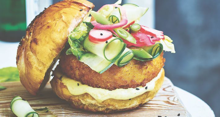 Dit is alles wat ik lekker vind in een burger: de krokante tofu is fantastisch! Het kraakt gewoon als je dit eet.