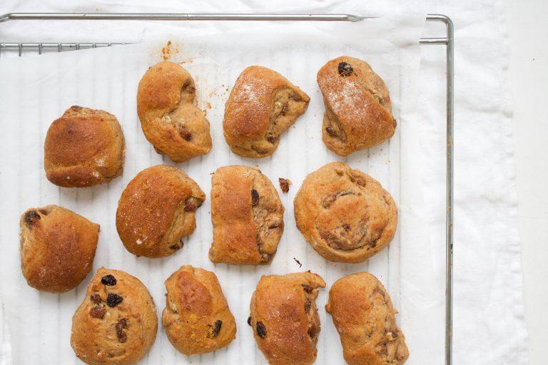 Deze eerste poging is dus iets anders uitgepakt, maar wél hele lekkere kaneel-rozijnen broodjes als resultaat!