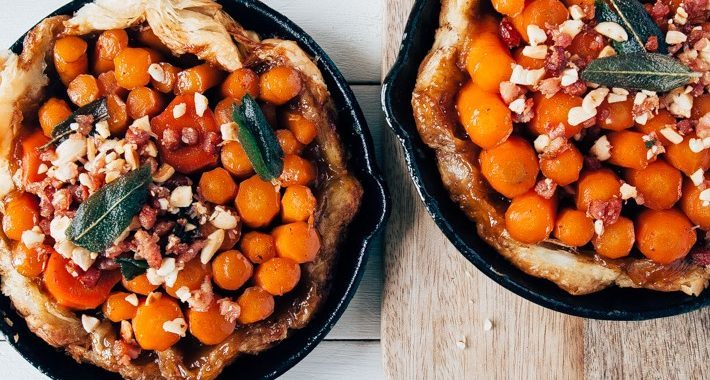 Wanneer je een beetje gestresst raakt tijdens de kerst, dan kun je dit recept heel fijn uitbesteden, zodat jij je op andere recepten kunt concentreren. De worteltjes snijd je namelijk allemaal even hoog en daarna kost het eventjes tijd om te kijken of je genoeg hebt door ze in het vormpje te zetten. Wanneer je kinderen hebt die je graag in de keuken helpen, is het een super leuk klusje om de worteltjes netjes in een vormpje te passen. Natuurlijk kun je dit recept ook in een mooie grote vorm maken. Een paar puntjes van deze tarte tatin met wortel en een frisse salade en je hebt een fantastisch hoofdgerecht.