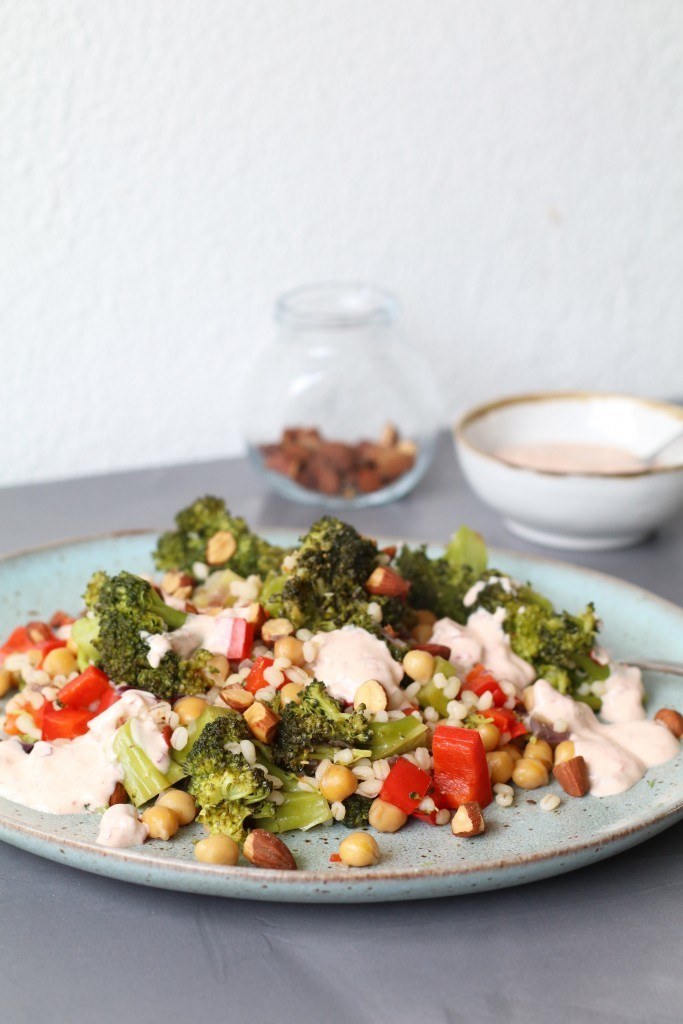 Vandaag heb ik een lekker vegetarisch recept voor jullie. Een bordje vol kikkererwten, broccoli en een pittig yoghurtsausje met harissa. Als ik een trend van de laatste tijd zou moeten noemen dan zou dat vegetarisch eten zijn, met de nadruk op gevarieerd eten en veel groenten. Ik ben zelf geen vegetariër, maar wel steeds bewuster van het vlees dat ik eet en de herkomst ervan. Daarbij wil ik per dag minimaal 300 gram groenten eten en daardoor sloop het er langzamerhand in dat ik steeds minder vlees en vis ging eten. Vroeger at je gewoon wat de pot schafte – het vertrouwde avg’tje – maar tegenwoordig hebben we zoveel meer keus :D