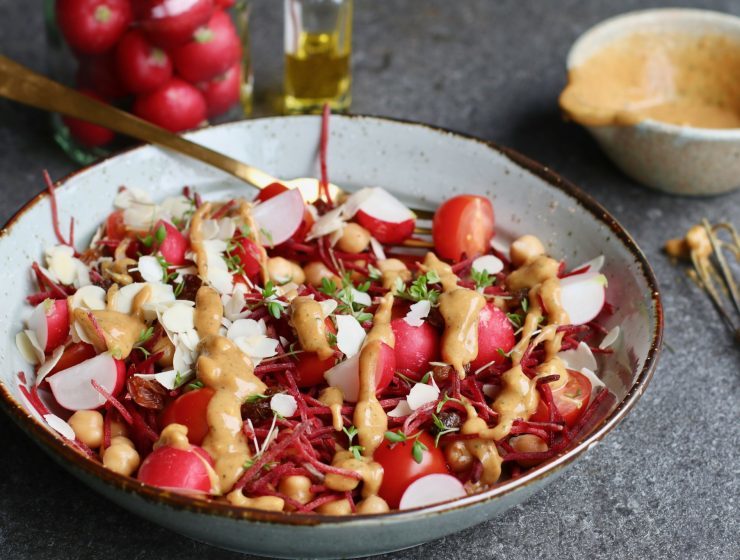 Kikkererwtensalade met biet en pinda dressing