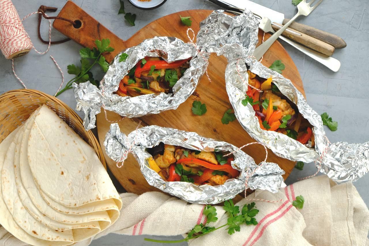 Stappen om kip fajitas pakketjes van de bbq te maken: