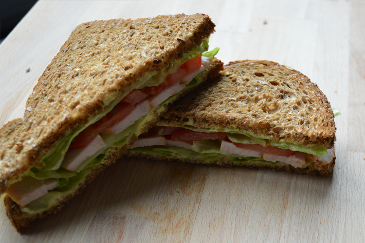 Dit is een recept voor één gezonde kip-kerrie sandwich.