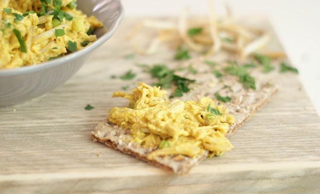 Kipkerrie salade is heel lekker vind ik, maar die uit de supermarkt bevat vaak meer mayonaise dan kip. Tijd om het zelf te maken dus!