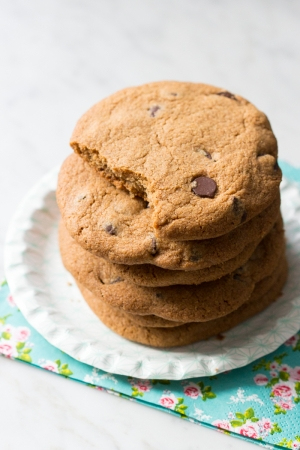 Wanneer je trouwens niet van chocolade houdt (kan ik me haast niet voorstellen, maar toch) kun je de chocolate chips ook weglaten, of voeg wat rozijnen toe bijvoorbeeld. Dan zijn de koekjes nog steeds net zo lekker.