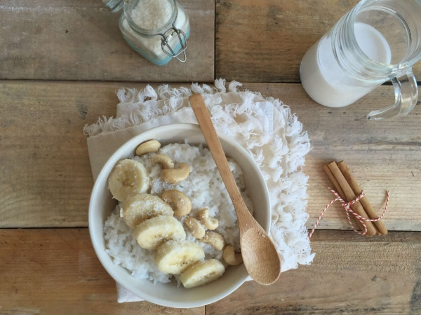 Een kliekje rijst bracht mij op het idee om een kokos rijstpap te maken. De rijst is al gaar en bewaar je in de koelkast. De volgende dag heb je binnen een mum van tijd een snel en gezond ontbijt gemaakt. De rijst wordt verwarmd met een beetje kokosmelk. Vervolgens doe je er een halve banaan bij met een handje nootjes en een snuf kaneel. Tjonge tjonge, wat een uitvinding is dit! Dat ik hier niet eerder op gekomen ben. Zeker omdat mijn oma vroeger rijstepap maakte als dessert. En thuis voegden wij een klontje boter met bruine suiker bij een restje rijst.