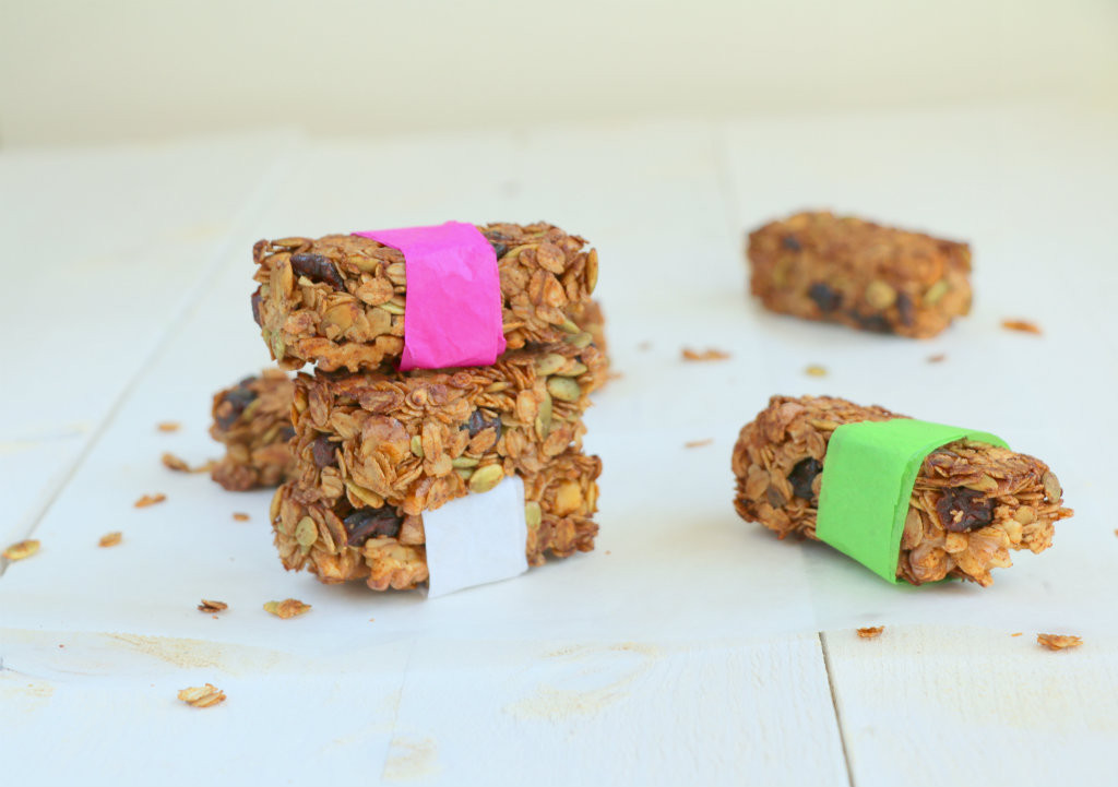 Voor de oplettende lezers, deze zelfgemaakte tussendoortjes zijn een variant op mijn speculaas granola. Kijk maar eens goed. Ik heb een aantal kleine aanpassingen gedaan en hoopte hiermee van die knapperige repen te krijgen. Persoonlijk ben ik erg tevreden over het resultaat. Ze zien er namelijk ook echt uit als repen en zijn niet uit elkaar gevallen.
