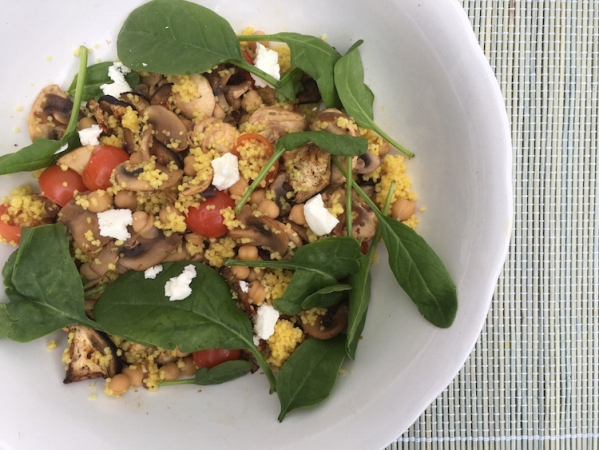 Deze maaltijd zit boordevol smaak! De geroosterde groenten en spicy couscous combineren lekker met de spinazie en frisse feta. Geen fan van couscous? Vervang de couscous door bulgur of quinoa. Ook lekker! Deze lauwwarme salade is heerlijk als avondmaaltijd, maar ook als lunch.