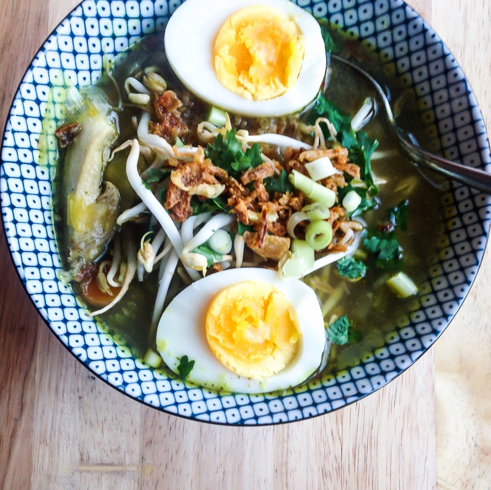 Over mijn liefde voor de Indonesische keuken kan ik dagenlang doorpraten, maar dat gaan we nu even niet doen. Als ik indofood bestel zit daar altijd een bakje soto ayam soep bij, oftewel Indonesische kippensoep. Dit spicy soepje zit boordevol vitamines en na 1 kommetje heb je de hele avond geen honger meer. Begin van deze week zat ik tegen ziek worden aan en dit was mijn redding! Ohja, en slaap ;-)