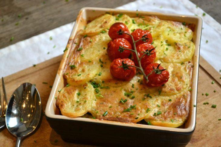 - 700 gram aardappelschijfjes, gesneden en 5 minuten gekookt
