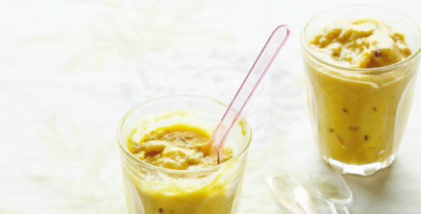 Ella: Dit is een van de makkelijkste recepten in het boek. Je maakt het in een paar minuten klaar en het smaakt waanzinnig. Het kan gewoon niet mislukken, en ik verzeker je: wat je ook doet, je krijgt een heerlijk toetje! Het is echt zalig en de textuur is ook zo fijn, heerlijk dik en romig. Je kunt het zo eten of er wat geroosterde nootjes of granola overheen strooien voor een krokante bite.
