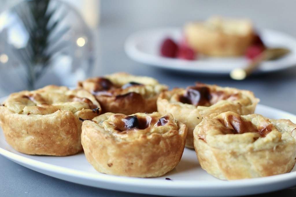 Serveer de pasteis de belem met fruit als frambozen, bosbessen of Kaapse goudbessen en een bolletje vanille ijs voor de liefhebber. Je kunt ze helaas niet een dag van te voren maken (ze zijn lekker lekkerst als ze net uit de oven komen), maar je hebt ze echt binnen no time gemaakt dus geen zorgen. Ik ben super benieuwd wat je ervan vindt dus laat het mij vooral weten wanneer je ze hebt gemaakt.