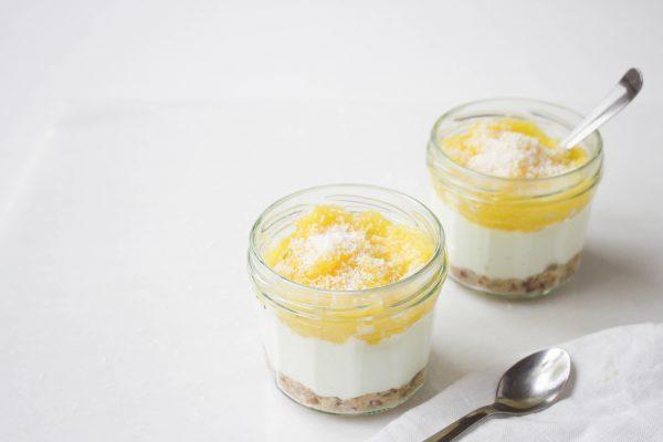 Op warme, zonnige dagen ontbijt het liefst met een licht en fris ontbijtje, met veel fruit! Een smoothie, smoothiebowl, chiapudding of deze heerlijke mango-cheesecake in een glas!
