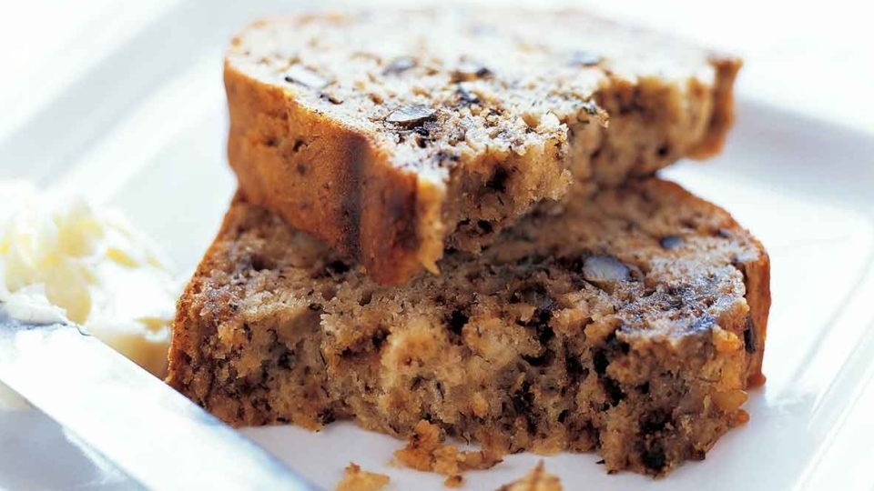 Je zult je moeten beheersen, want het is toch echt de bedoeling dat je dit masker van bananenbrood op je gezicht smeert.