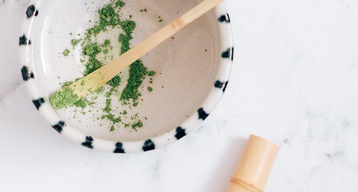 Zo maak je het Doe de Matcha in een kommetje. Voeg hier een eetlepel warm water aan toe.
