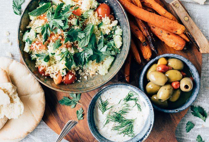 Zo’n hele borrelplank klinkt als een enorme lijst aan gerechtjes. Wat ook logisch is bij een borrelplank, want je wilt allerlei dingetjes laten proeven. Maar wanneer je de receptuur doorleest zal je er achterkomen dat het eigenlijk helemaal niet zoveel werk is. De truc zit hem in leuk presenteren, een deel zelf maken en een deel kant-en-klaar kopen. Pick your battle’s om maar zo te zeggen. Bij deze borrelplank heb ik er bij de ingrediënten gezet wat ik kant-en-klaar zou kopen. Je kunt het natuurlijk uitbreiden zoals je zelf wilt. Of weglaten wat je wilt, of misschien maak je alleen de krokante kikkererwten. Heel lekker! (goed snackje, ook voor op je werk!)