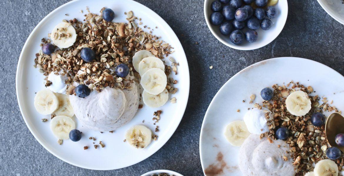 Om dit ontbijtje (of dessert?) helemaal tot een succes te maken voeg je een paar flinke scheppen koffie granola toe. Ik heb een nieuwe favoriet en dat is de coffee & walnut granola van Eat Natural (zie foto hieronder). Met gemalen koffieboontjes voor de crunch én zonder geraffineerde suikers maar met honing. Daar houden we van!