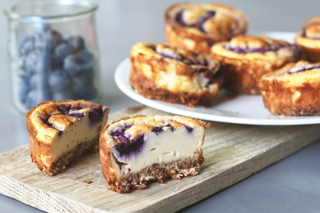 Ik ben echt onwijs gek op cheesecake en in plaats van één grote cheesecake te bakken besloot ik vorige week om er mini’s van te maken. Lekker voor bij de koffie en super leuk als dessert tijdens etentjes! Dit is een iets gezondere variant op de normale cheesecake die bomvol suiker zit. Deze mini blueberry cheesecakes zijn gezoet met honing en in plaats van de originele koekjesbodem maakte ik een bodem van dadels en havermout. Dat maakt deze cheesecakejes ook meteen glutenvrij. En heeeel erg lekker dus ik zou zeggen, duik vanmiddag nog de keuken in :D
