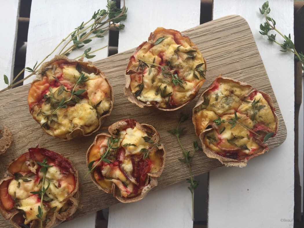Ik koos voor een vulling van geitenkaas en verse tijm. Ik HOU van die combinatie. (Ik maak soms zelfs pure chocolade met verse tijm) Om van de quiches echte eyecatchers te maken voeg je wat rauwe biet toe. De smaak van eten begint bij het oog zullen we maar zeggen en bij het zien van deze kleurrijke quiches krijgt iedereen honger, promise :)