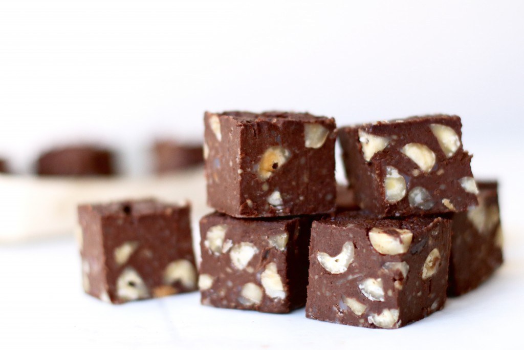 Zoals jullie van mij gewend zijn heb ik de ongezonde fudge omgetoverd tot een gezondere variant zonder boter en geraffineerde suiker. Dat wil niet zeggen dat je jezelf er gedachteloos vol mee kunt proppen, want noten en bevatten nu eenmaal wat vet. Gezond vet dat dan weer wel. Maar geloof me, ze zijn vrij machtig en na twee stukjes ben je verzadigd. Misschien drie..