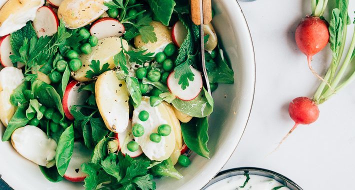Om de dressing wat lichter te maken, voeg ik wat yoghurt toe. Dat geeft samen met de munt een hele frisse smaak aan deze aardappelsalade. Het recept is voldoende voor 4 personen als bijgerecht. Grill er een lekker kippetje bij of bak een stukje vis en je hebt een prima maaltje. Ik ben benieuwd wat je ervan vindt.