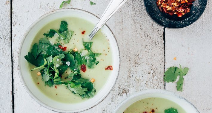 Ondanks dat deze avocadosoep zo gemakkelijk is, is hij juist ook heel leuk in kleine glaasjes voor een leuk Aziatisch getint etentje of wanneer je een leuke zomerse bbq geeft en je wilt nog even iets extra’s doen zonder je echt enorm in het zweet te werken. Hoe je hem maakt? Je pureert de avocado’s. Voegt warme bouillon toe, pureert opnieuw zodat je een mooie gladde soep krijgt en brengt dan op smaak met limoensap, tabasco, zout en peper. De verse kruiden of zelf bedachte extra topping garneer je bovenop! De soep is ook koud lekker. Zet hem dan juist nog even in de koelkast. Proef wel even opnieuw, koude soepen hebben wat meer peper en zout nodig. De glaasjes zou je dan heel leuk op een schaal kunnen zetten met crushed ijs!