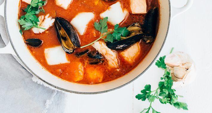 Kraakverse vis! Ik koos voor een mengeling van zalm, heilbot, mosselen en gamba’s. Heilbot is wat steviger en daardoor perfect voor stoofpotjes. Het valt niet uit elkaar. Het is een mediterraans stoofpotje geworden, want het hoofdbestanddeel is tomaat. Lekker licht dus. Ik zou er brood bij serveren, lekker dippen in de tomatensaus, maar pasta of rijst kan ook. Ook leuk om te maken als je vrienden te eten krijgt, ik vind het namelijk best een resto proof recept. Vind je ook niet?