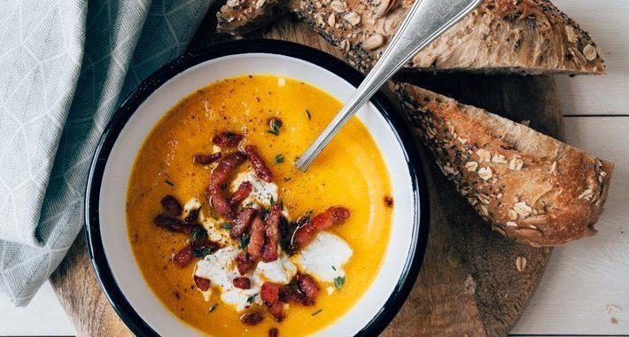 Ik ben dus gek op toppings op een soep. Dit wortelsoep recept heeft al genoeg smaak zonder de topping, maar het maakt de soep minder saai en nog lekkerder. Met een topping kun je namelijk een soep wat extra smaken meegeven. Omdat wortels tijdens het bakken en koken zoet worden vind ik een zoute topping goed passen. Uitgebakken spekjes en geitenkaas passen daar perfect bij. Tijm en wortel zijn qua smaak dikke vrienden en kon ik gewoon niet weg laten.