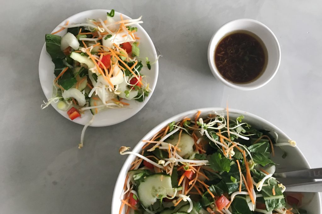Deze Oosterse salade doet me denken aan mijn trip naar Thailand. Stiekem had de salade nog wel iets pittiger gemoeten om in de buurt van die Thaise smaken te komen. Als je daar van houdt adviseer ik je om nog een stuk rode peper fijn te snijden en te mengen door de dressing. Lekker! Maar zoals ie nu is, is ie geschikt voor het hele gezin!