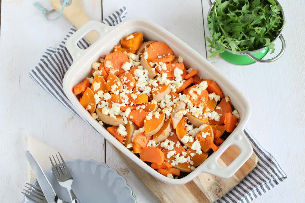 Het gehakt heeft een Sinterklaas tintje gekregen door de speculaaskruiden en de zoete ketjap. Heb je dat wel eens eerder geprobeerd? Echt, dat is een dikke vette aanrader. En het zoete van het gehakt past weer perfect bij het zilte van de feta. Al met al een ovenschotel waar ik blij van word. Alleen al die fel oranje kleur van de pompoen en de aardappel. Een echt herfst recept.