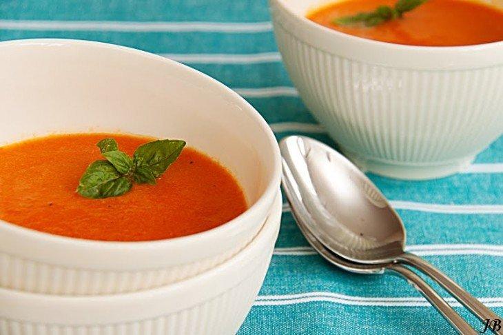 Dit recept voor tomaat-paprikasoep maakte ik gisteren. Zowel wijzelf, als onze dochter van twee jaar, smulden ervan. Lekker met bruchetta met tomaat, mozzarella en basilicum of met stokbrood. Voeg eventueel voor het serveren nog wat verse basilicum en/of peterselie toe.