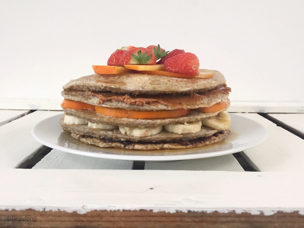 Woensdag was mijn lieveling jarig en maakte ik deze taart voor hem. En dit was niet de enige taart die ik maakte want als je jarig bent.. ontbijt je met pannenkoekentaart! Het liefst op bed, maar dat raad ik niet aan met deze berg want voor je het weet zit je helemaal onder ;) En vergis je niet. De taart ziet er klein uit maar we kregen hem met moeite op. Door de havermout vult hij goed en is hij ook nog eens lekker gezond.