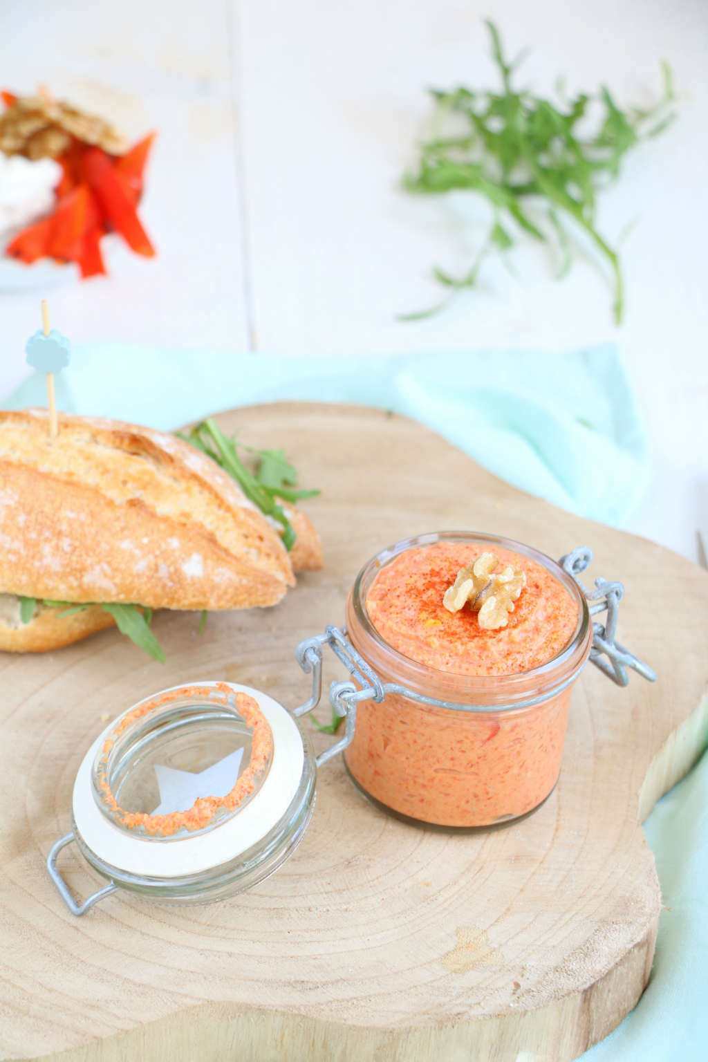 Yes, vandaag weer zo’n fijn recept om zelf broodbeleg te maken: een paprika spread met geitenkaas. Denk nu niet, dat ik elke dag zelfgemaakte smeersels eet. Hier neem ik ook niet altijd de tijd voor. Het ligt eraan hoe mijn pet staat. Als ik al veel in de keuken gestaan heb, dan ontbreekt bij mij de “zin” regelmatig.
